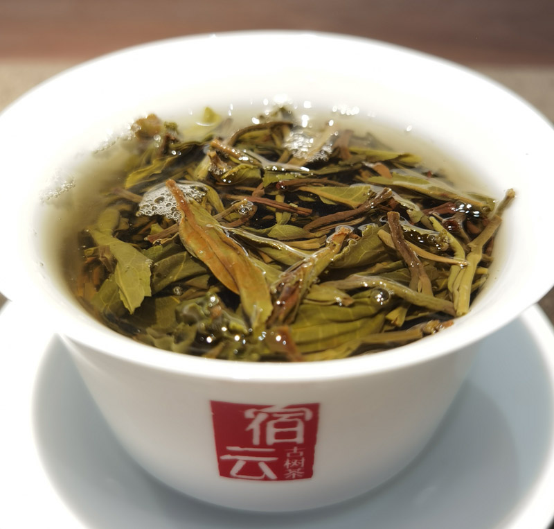 玻璃杯中的古樹茶因有了水的浸潤而婉轉(zhuǎn)游弋,它不似龍井的旗槍,也不像雀舌或銀針的筆直,它更加舒展和多姿,喝茶的同時欣賞一下也是別有一番風(fēng)趣。