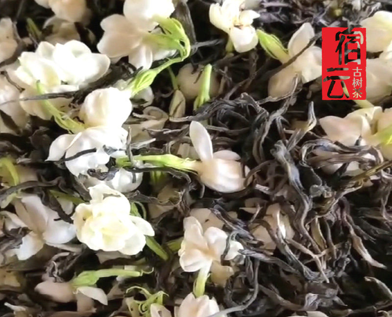 而眼前這款古樹茉莉花茶,它的茶坯選用的是云南大葉種喬木古樹茶青,樹齡均在一百年之上,不施肥、不打藥。以它為茶坯與茉莉鮮花進(jìn)行窨制、通花散熱、起花篩花、反復(fù)多次窨制等等一系列過程,使古樹茶吸附花香,終得一款花香濃郁、茶湯柔和甘甜的古樹茉莉花茶。